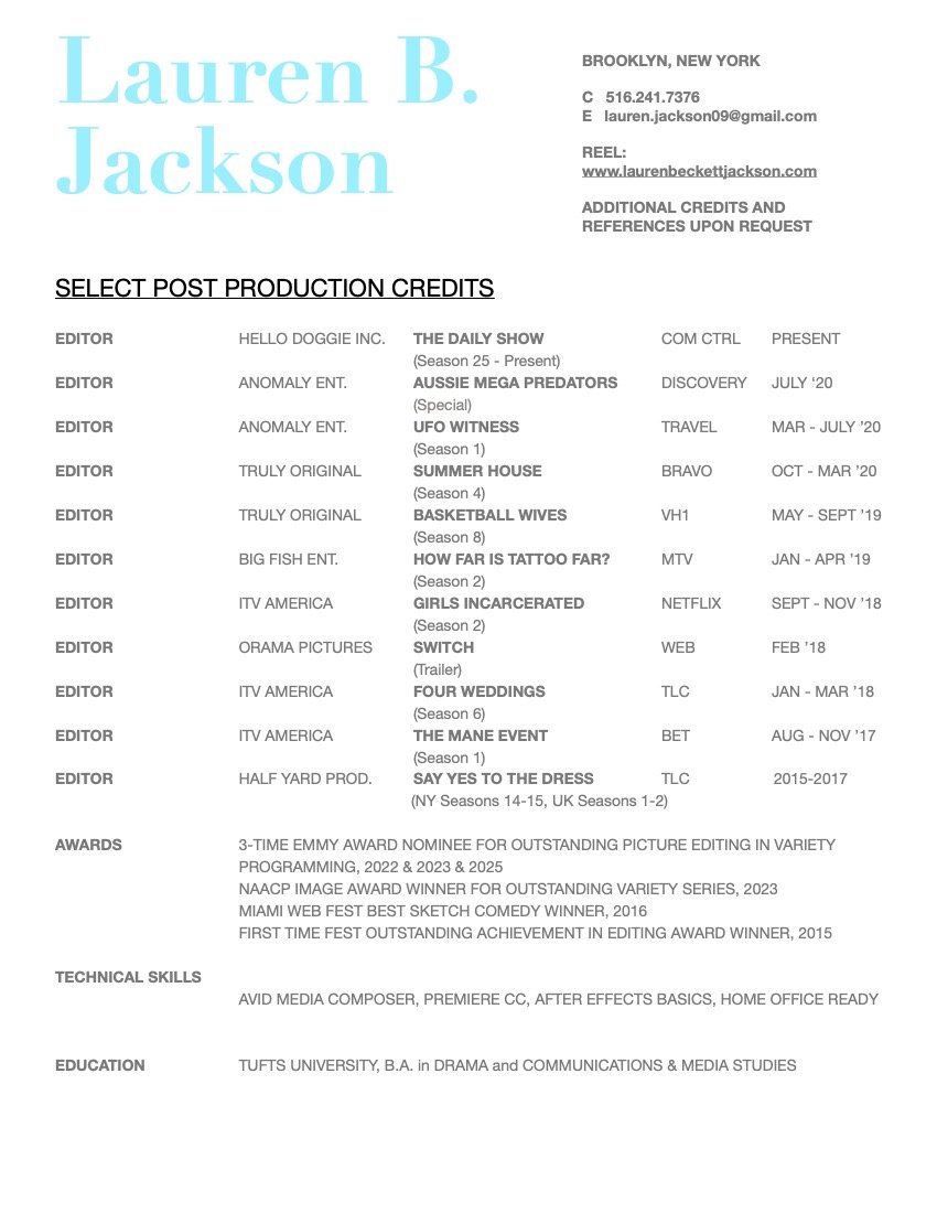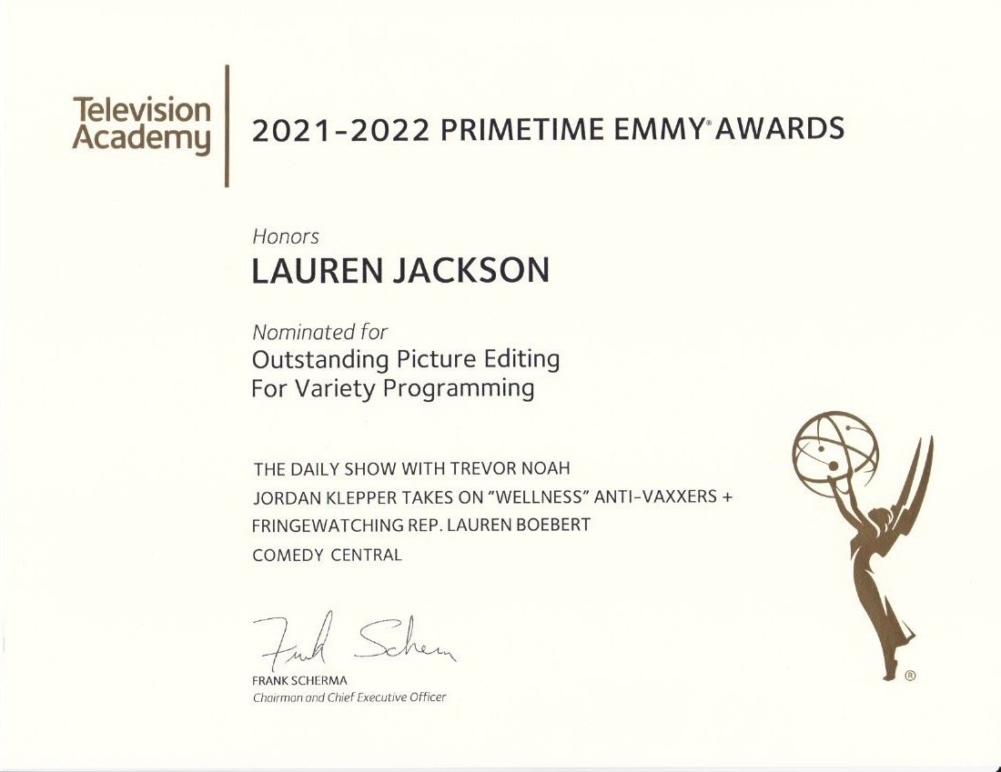 Lauren has been nominated for 3 Creative Arts Emmy Awards for Outstanding Picture Editing in Variety Programming during the 2022, 2023 and 2025 seasons.